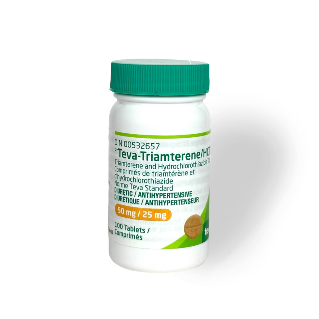 Combination Diuretic Tablets Containing Triamterene 50mg And Hydrochlorothiazide 25mg, Manufactured By Teva, Supplied In A 100-Tablet Bottle. Categorized Under Diuretics And Pharmaceutical Grade.
